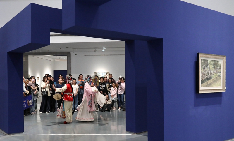 10月4日,游客在江苏省苏州美术馆观看昆曲《牡丹亭》。新华社发(杭兴微 摄)