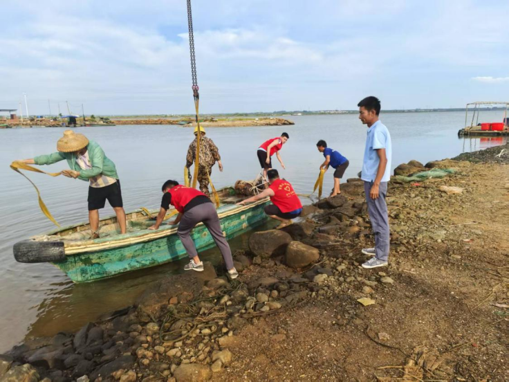 雷州党员干部督促渔船及时回港。
