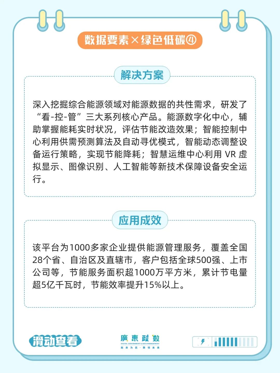 为深入贯彻落实国家数据局等有关部门《“数据要素×”三年行动计划(2024-2026年)》广东省政务服务和数据管理局聚焦工业制造、金融服务、科技创新等12个重点行业领域遴选了120个“数据要素x”典型案例通过发挥典型案例示范引领作用充分释放数据要素价值促进我省数据产业高质量发展本期分享6个案例一起关注绿色低碳领域如何发挥乘数效应