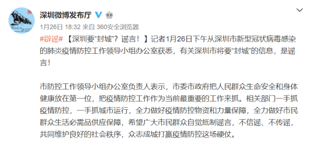 希望广大网民不造谣、不信谣、不传谣,共同维护良好网络环境,团结一心,共同抗击疫情!
